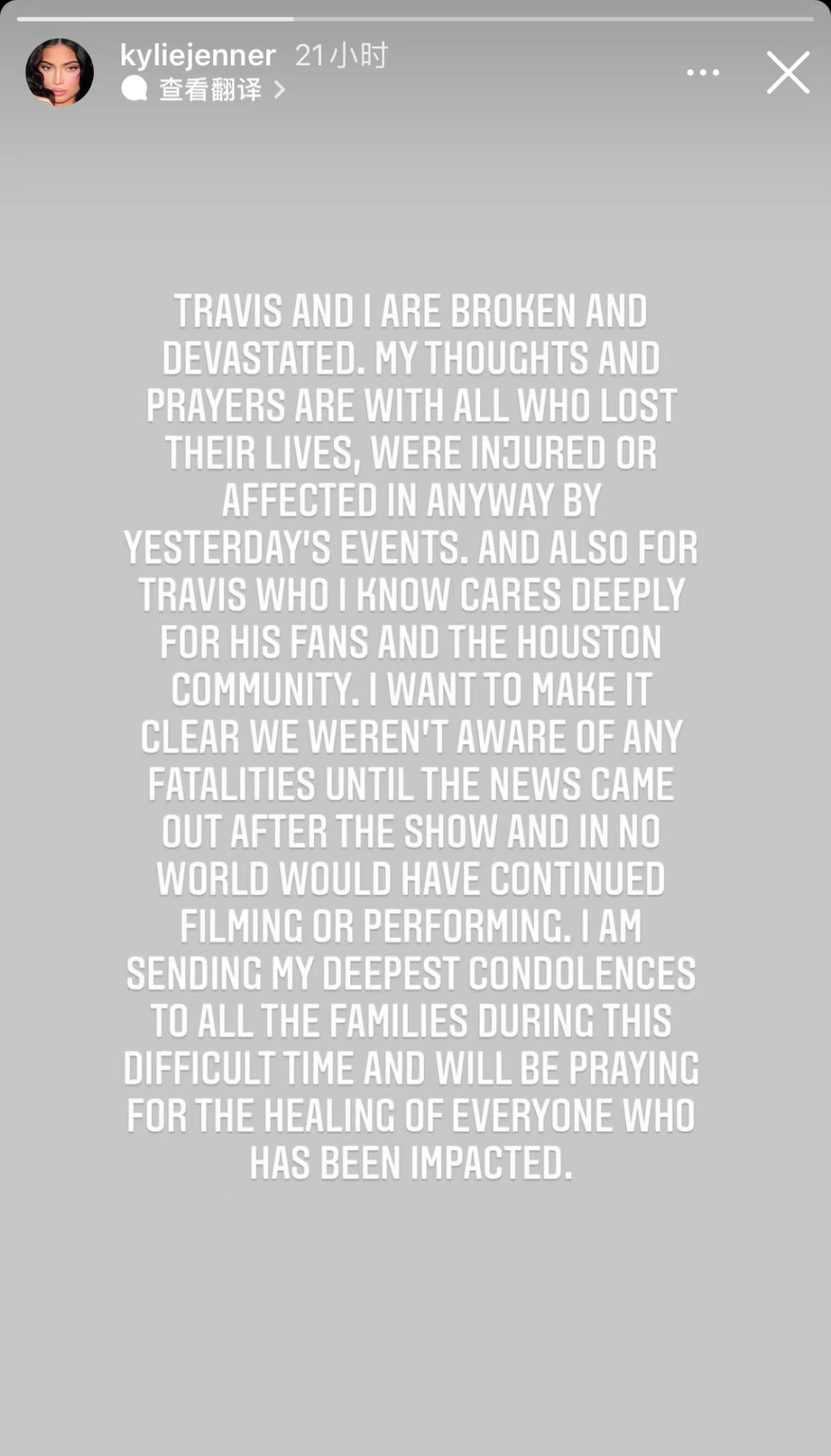 Travis Scott的女友Kylie Jenner也發文替男友解釋: