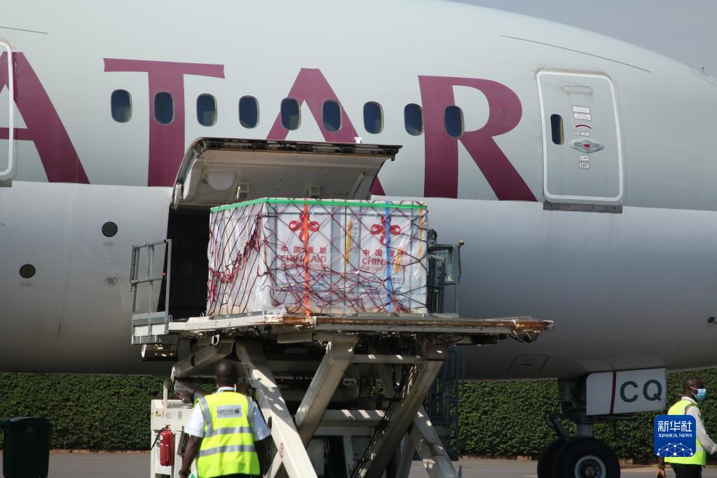 11月7日,中國援助的新冠疫苗抵達盧旺達首都基加利國際機場。新華社記者 吉莉 攝