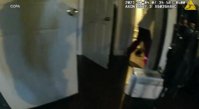 當警察抵達現場時,男孩正在人行道上等待,並表示“母親拿着刀,是父親讓我報警”。隨後,警察持槍一邊走進門口,一邊向公寓裏的人喊話,這時克雷格回喊“她在我的脖子上架着一把刀”,接着屋內傳出尖叫聲。警察便衝進房內直接朝克雷格開槍,甚至在克雷格起身時再補一槍,導致對方當場身亡。