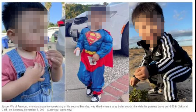 當地時間11月6日,美國加利福尼亞州高速公路發生槍戰,子彈擊中路過的車輛。一名23個月大的華裔男童不幸被流彈擊中頭部身亡。警方稱此次槍戰或與黑幫火拼有關。