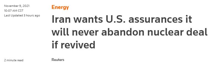這不是伊朗方面第一次要求美國為不再退出伊核協議提供保證了。今年6月份,伊朗外交部發言人哈提卜扎德就曾表示,美國特朗普政府“無視其他國家利益”單方面退出伊朗核問題全面協議,如果美方要重回伊核協議,現任美國政府必須就不再單方面退出伊核協議提供保證。而據報道,俄羅斯外交部長拉夫羅夫9月25日在紐約聯合國總部披露表示,圍繞美國和伊朗恢復履行伊朗核問題全面協議的談判期間,美方拒絕就未來不會再次“退羣”作出書面保證。