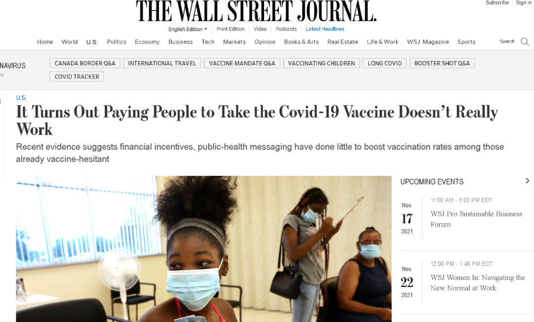 此前,包括澳大利亞在內的不少西方國家的“反疫苗”羣體,在美國保守派勢力的煽動下串聯在了一起,對這些國家的防疫政策和疫苗接種工作造成了嚴重的擾亂和破壞。所以澳大利亞乃至美國等國都出現了這種用獎金激勵人們去打疫苗的做法。但美國《華爾街日報》的一篇報道稱,有調查發現這種現金激勵措施並不會讓那些反對打疫苗的人改變想法。