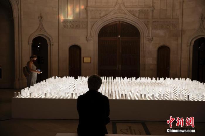 當地時間10月7日,美國紐約綠林墓地教堂內陳設由藝術家創制的互動藝術裝置“終結之後”(After the End)。作品由上百支寫有寄語的紙筒組成發光祭壇,參觀者可在現場書寫寄語放入祭壇,表達對新冠逝者的悼念。中新社記者 廖攀 攝