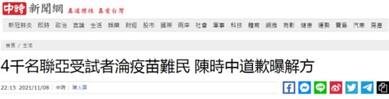 台媒:4000名聯亞疫苗受試者有如“疫苗難民”,陳時中道歉,網友:鱷魚的眼淚