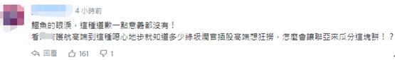 對於陳時中的這番道歉,不少島內網友並不買賬,有網友直斥,鱷魚的眼淚,這種道歉一點意義都沒有!看民進黨當局護航“高端”到這種噁心地步就知道多少綠營官員插股“高端”想狂撈,怎麼會讓聯亞來瓜分這塊餅?↓