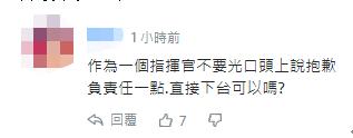 更有網友直言,“作為一個指揮官(指陳時中)不要光口頭上説抱歉,負責任一點,直接下台可以嗎?”↓