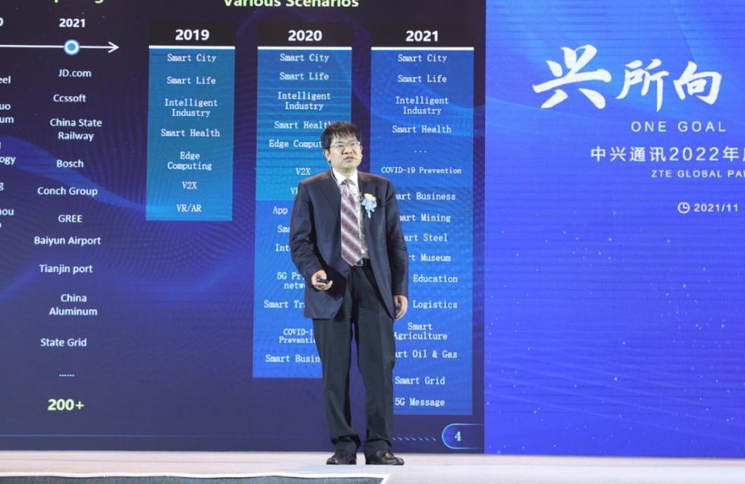 當前,5G行業應用場景不斷擴展,湧現出大批優秀案例,中興通訊副總裁、5G產業產品部總經理陸平就此話題發表主題演講。他表示,5G賦能千行百業,關鍵在於進入行業的核心業務生產流程。為迎接這一挑戰,中興通訊依託自身數字化轉型實踐,由內到外、由淺入深、由點到面,為行業提供真正創造價值的場景化解決方案。目前,中興通訊已在全球範圍內發展超過500家合作伙伴,聯合探索了超百個5G創新應用場景。