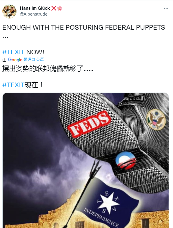 有網友疑問,得州這是要打響“脱美建國”第一槍了嗎?