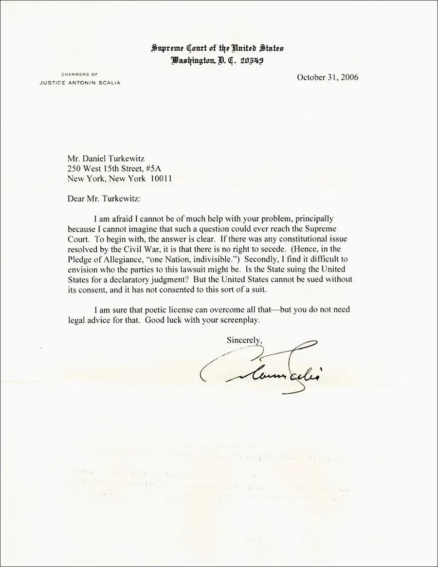 雖然得州在內戰期間曾經脱離過聯邦,但就像美國最高法院前大法官Antonin Scalia在2006年曾經在一封信中説過:”如果説內戰解決了什麼憲法問題,那就是(各州)沒有脱離的權利。”