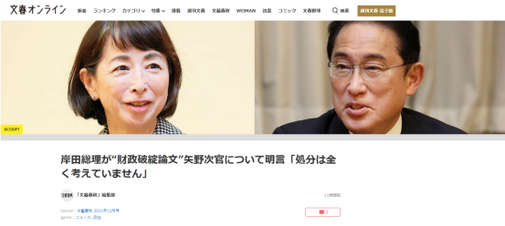 “文春online”稱,矢野康治的文章受到了安倍晉三和自民黨政調會長高市早苗的強烈指責,要求撤換其財務省事務次官的職位。