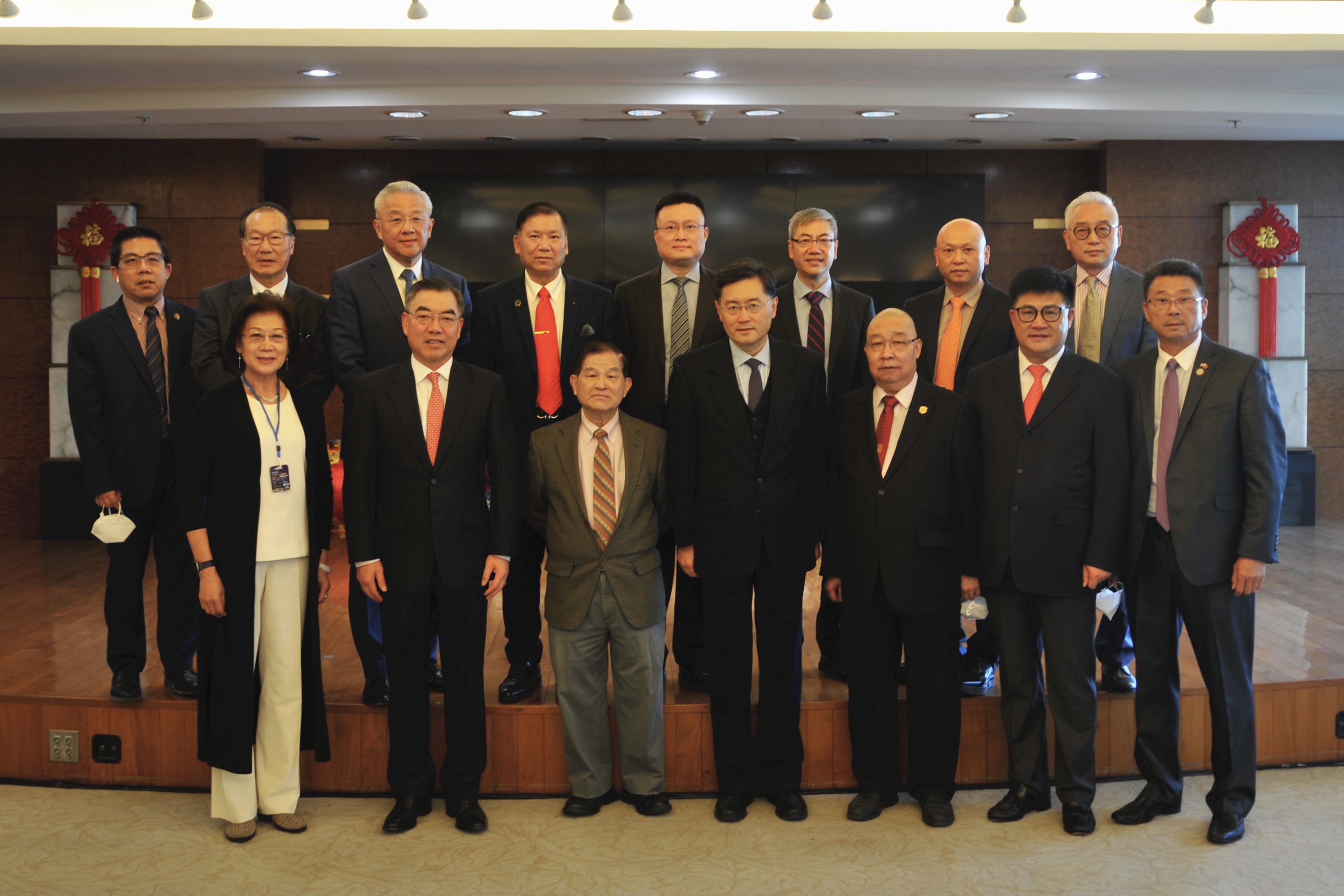 11月9日,秦剛大使在紐約會見當地僑界代表並座談,駐紐約總領館黃屏總領事主持會議。來自紐約地區11名僑團負責人出席。