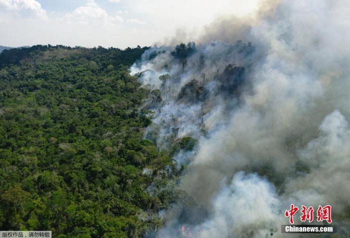 當地時間2020年8月16日,巴西帕拉州新普雷索以南的亞馬孫雨林保護區火災持續,濃煙滾滾。