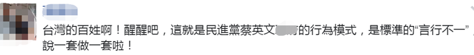 還有網友勸台灣的百姓醒醒:這就是民進黨當局的行為模式,是標準的“言行不一”,説一套做一套啦!↓