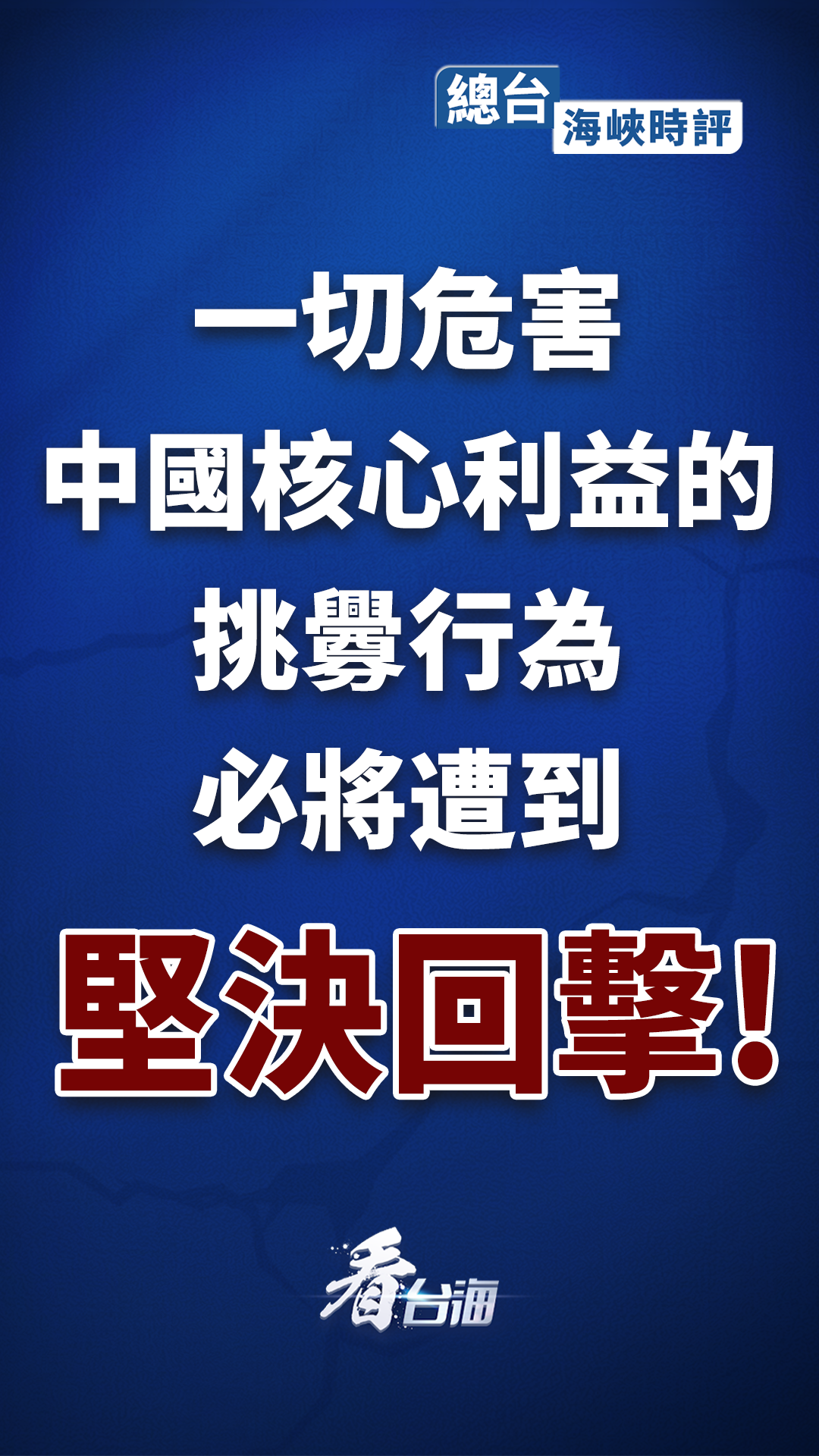 總枱海峽時評丨一切危害中國核心利益的挑釁行為必將遭到堅決回擊!