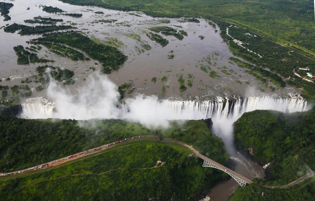 這是2017年1月26日拍攝的位於津巴布韋和贊比亞交界處的維多利亞瀑布。新華社發(費列蒙 攝)