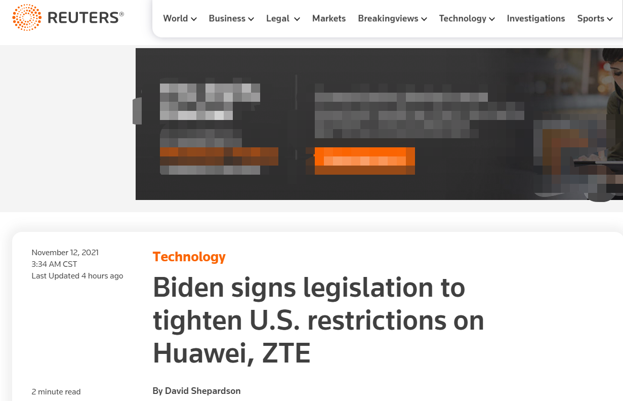 不擇手段!拜登簽署“2021年安全設備法”,封堵打壓華為等中企
