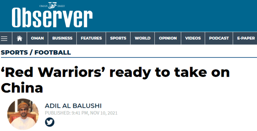 賽前,阿曼全隊上下充滿自信,這從該國媒體《阿曼觀察報》文章就略見一斑。10日,該媒體發文稱:“一支自信的阿曼隊將直指勝利,向完成夢想和進軍世界盃更進一步。”