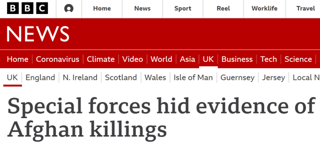 2019年,媒體爆料英國特種部隊士兵被指控在阿富汗戰爭期間非法殺人。英國高等法院正在考慮英國軍方是否對這些指控進行了適當的調查。