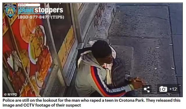在這兩起事件發生前一天,那名13歲的女孩走在放學回家的路上,在布朗克斯克羅託納公園被強姦。警方還在搜捕此案的嫌疑人,他此前被監控設備抓拍到。這起案件發生在當地時間11月10日下午2點35分,當時一名身份不明的男子接近這名13歲女孩並將她摔倒在地。在性侵女孩後,男子偷了她的手機並逃跑了。女孩被送往附近的醫院。