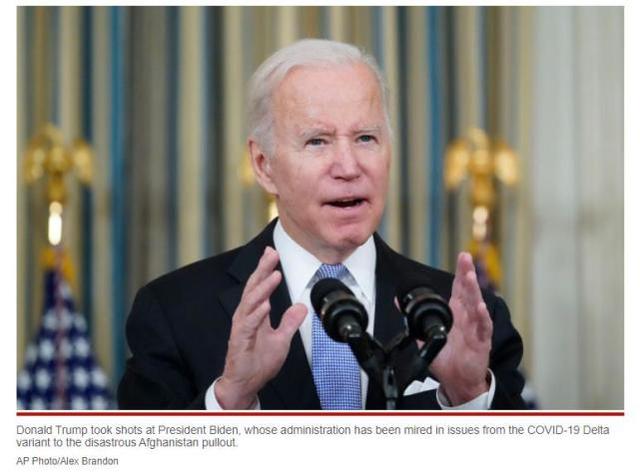 特朗普一直抨擊拜登,甚至要求拜登因阿富汗撤軍問題而辭職。在今年8月發佈的一份聲明中,特朗普寫道,“是時候讓喬·拜登不光彩地辭職了,因為他聽任阿富汗發生的事情,以及新冠病例大幅飆升、邊境災難、能源獨立性遭破壞和美國陷入癱瘓的經濟。”