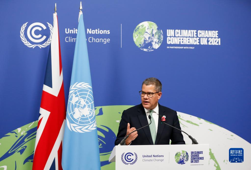 11月13日,在英國格拉斯哥舉行的《聯合國氣候變化框架公約》第26次締約方大會閉幕會後,大會主席夏爾馬在新聞發佈會上發言。新華社記者韓巖攝
