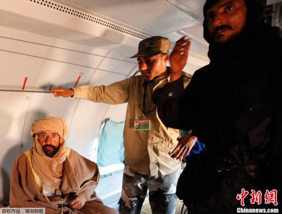 資料圖:2011年,利比亞“全國過渡委員會”(過渡委)軍方在的黎波里宣佈,執政當局在利比亞南部塞卜哈地區成功抓獲卡扎菲次子賽義夫·伊斯蘭·卡扎菲。