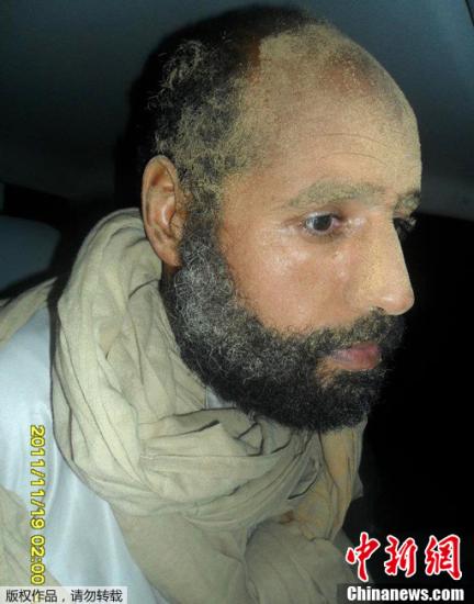 資料圖:這張來自利比亞“二月十七日”網站的圖片顯示,11月19日,卡扎菲次子賽義夫·伊斯蘭·卡扎菲被送到津坦城。