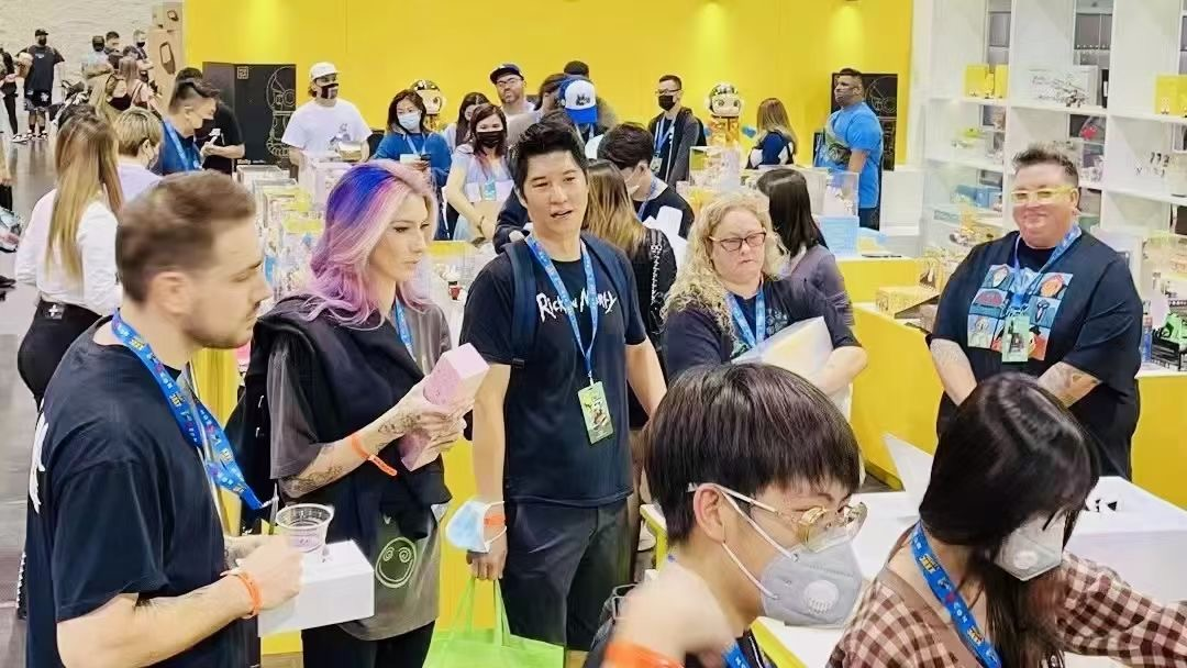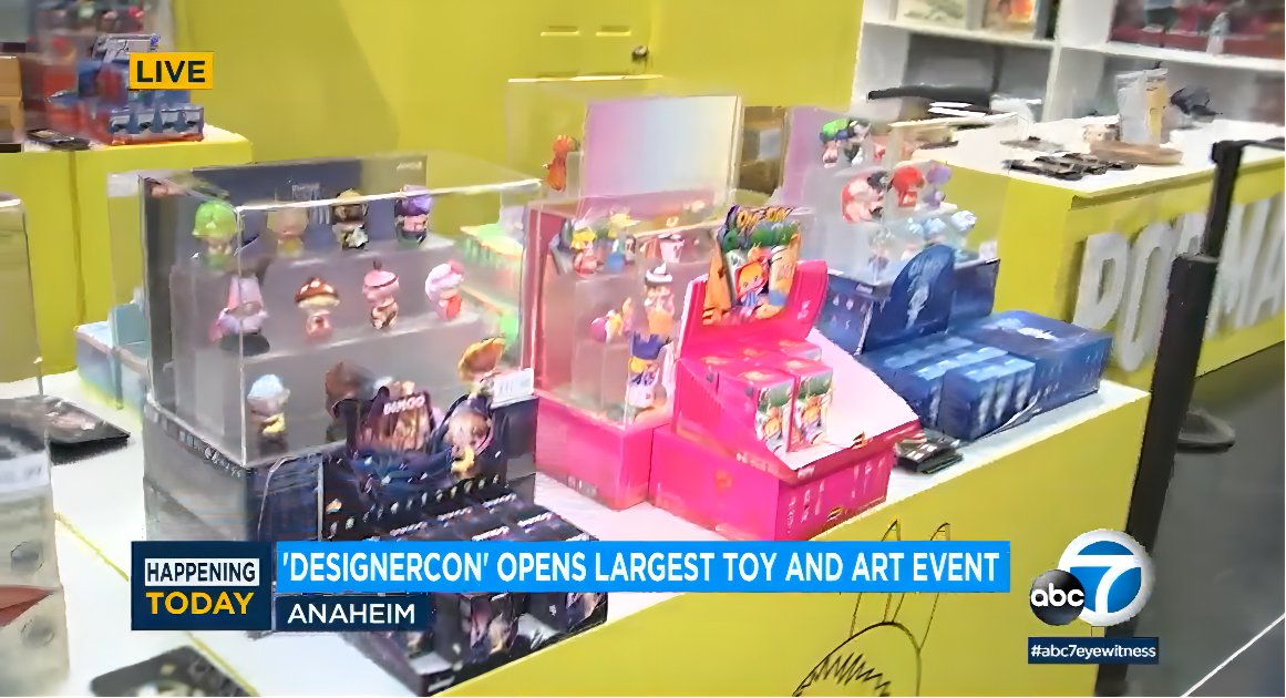 在剛剛過去的週末,最具全球影響力之一潮流藝術盛會DesignerCon在美國阿納海姆舉行。作為中國潮玩的開創者及龍頭企業,泡泡瑪特繼英國DesignerCon後,再次亮相。設計新潮的潮玩產品、色彩明亮的展台再次吸引全球潮玩愛好者的目光,現場排隊購買的人羣隊伍一度圍繞展位轉了一圈,並在美國當地電視台ABC中亮相。