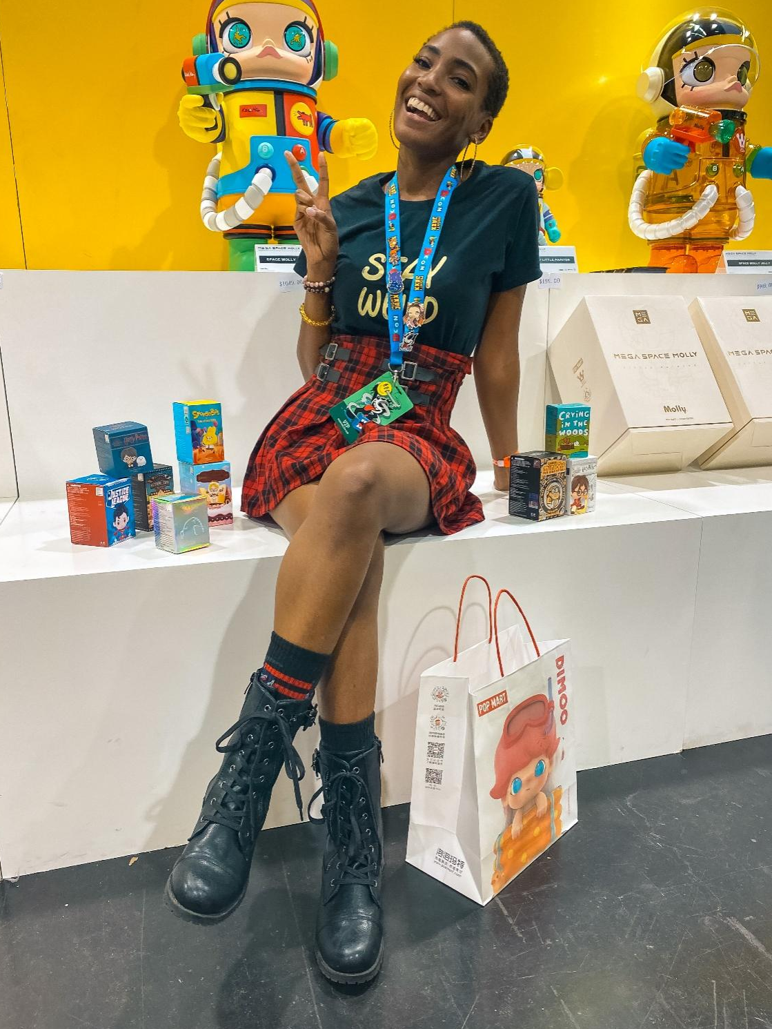 在為期三天的展覽中,泡泡瑪特展示了最新推出的首個藝術家聯名款MEGA COLLECTION 1000% SPACE MOLLY × Keith Haring,獲得大批粉絲追捧。現場的MEGA珍藏系列其它產品、以及泡泡瑪特頭部IP潮玩產品 - DIMOO、The Monsters、 SKULLPANDA,和泡泡瑪特內部設計師團隊PDC(POP MART設計中心)孵化的Yuki, Hirono潮玩產品也讓現場觀眾為之瘋狂。