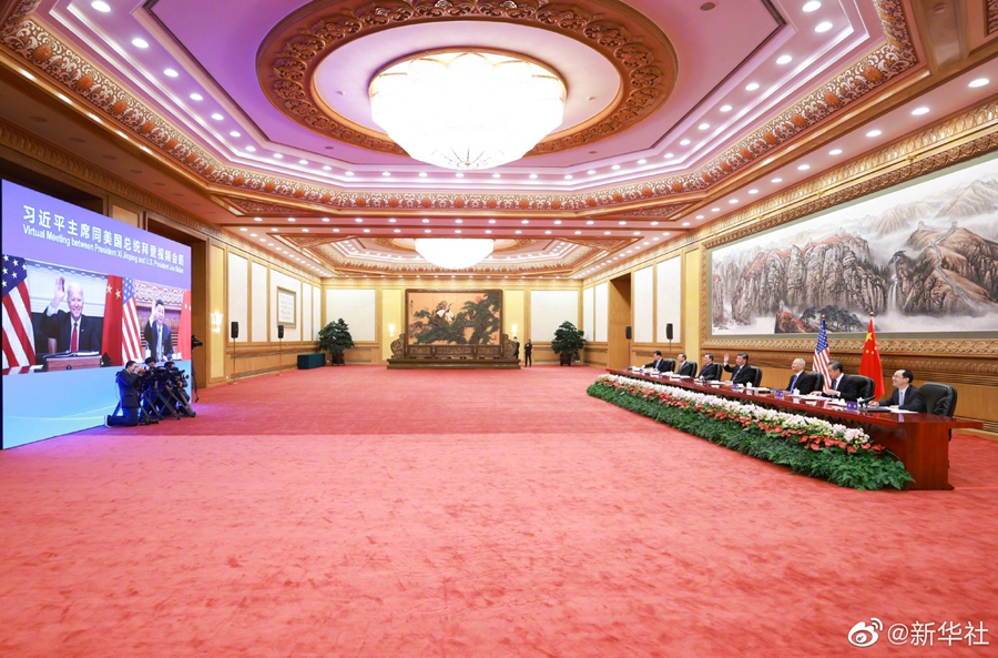 習近平強調,推動中美各自發展,維護和平穩定的國際環境,包括有效應對氣候變化、新冠肺炎疫情在內的全球性挑戰,都需要一個健康穩定的中美關係。中美應該相互尊重、和平共處、合作共贏。我願同總統先生一道,形成共識,積極行動,引領中美關係積極向前發展。這是造福兩國人民的需要,也是國際社會的期待。