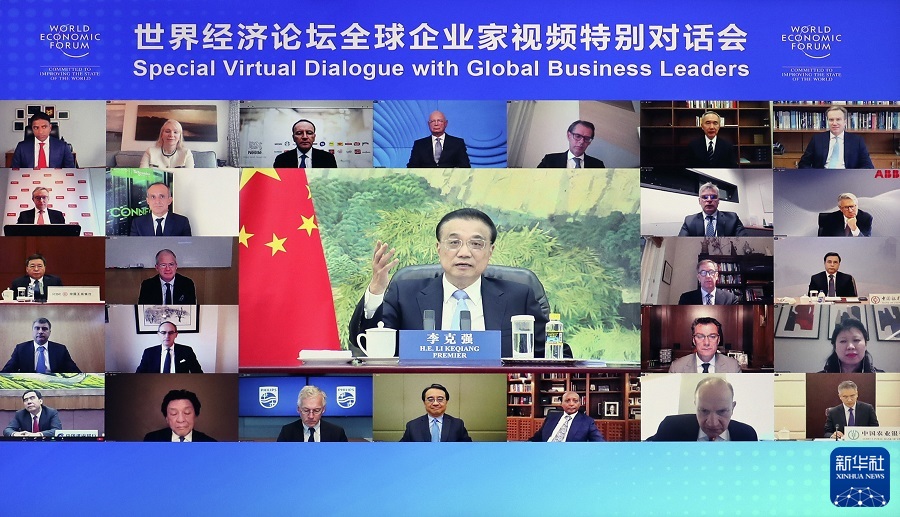 新華社北京11月17日電 國務院總理李克強11月16日晚在人民大會堂出席世界經濟論壇全球企業家特別對話會,發表致辭並同企業家代表互動交流。對話會以視頻方式舉行,世界經濟論壇主席施瓦布主持,來自40多個國家的近400位企業家參加。