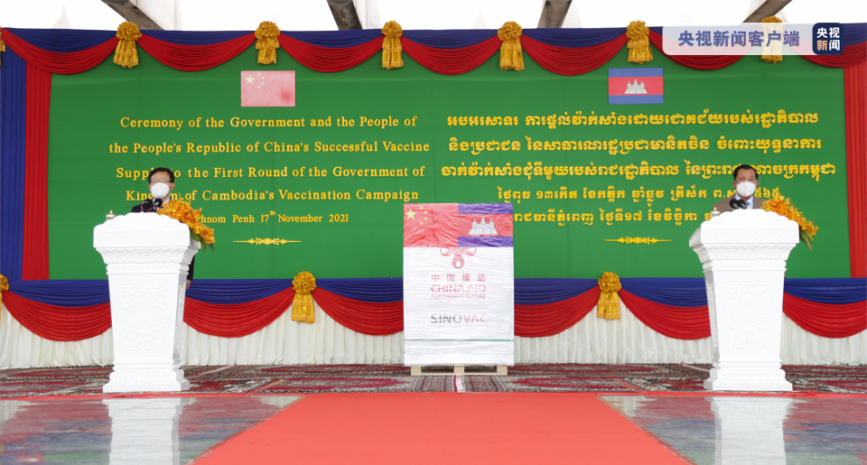 柬埔寨首相洪森在疫苗交接儀式上表示,柬埔寨國家疫苗接種運動的佳績與中國提供的新冠疫苗密不可分。