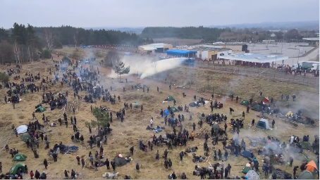 週二,波蘭軍方對難民使用高壓水炮和催淚瓦斯。華沙方面稱,這是為了阻止難民進入波蘭。波國防部稱,一羣試圖入境的難民摧毀圍欄,並用石塊和眩暈手榴彈攻擊波安全部隊人員,而眩暈手榴彈等是白俄羅斯提供給難民的。