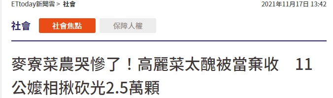 台媒爆雲林縣一菜農2萬多棵捲心菜一晚被偷光,“菜農哭慘了”!
