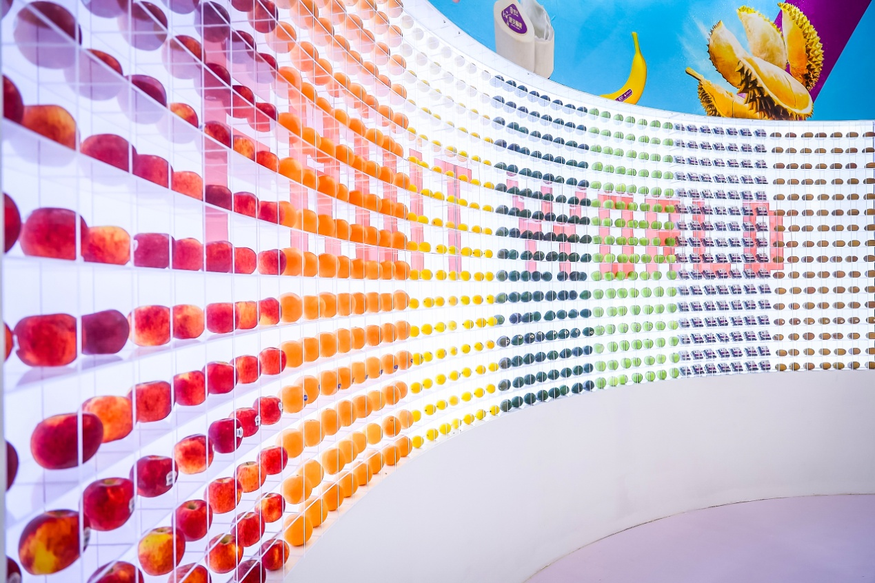 本次首屆上海國際水果展上,鑫榮懋攜旗下佳沃藍莓、佳沃香蕉、歡樂果園橙、天山1號哈密瓜,以及戰略合作品牌佳沛奇異果、愛妃蘋果、樂淇蘋果、都樂水果杯、Costa澳洲臍橙、褚橙、農夫山泉17.5°橙等知名水果登場,以一道五彩繽紛的“Fruit World”水果牆閃亮全場。