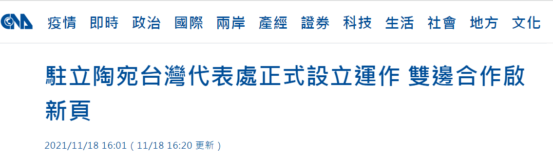 據報道,台外事部門18日下午發佈新聞稿聲稱,台灣與立陶宛在半導體、金融科技等各項產業領域具有龐大合作潛力,“未來將持續在共享的核心價值上,致力促進雙方人民友誼”云云。台外事部門還聲稱,“駐立陶宛台灣代表處”自即日起將負責立陶宛全境包含“領事”等業務。