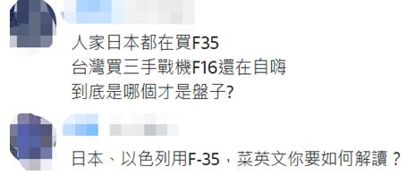 有網友説:“人家日本都在買F-35,台灣買三手(代)戰機F-16還在自嗨。”↓