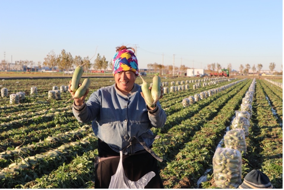 銷售渠道拓寬,對蘿蔔的需求量更大了。起初,一年銷售的100畝蘿蔔,主要來自自己和種植户的合作種植基地,外加趙萍在周邊農户處收購。隨後,她們發現這些量遠遠不夠。