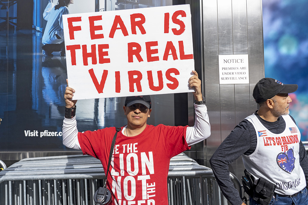 美國紐約曼哈頓舉行反對強制接種新冠疫苗的遊行示威。(資料圖)