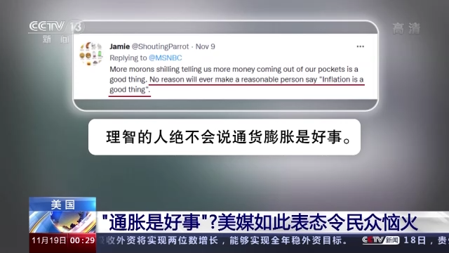 面對如此嚴重的通脹,部分美國媒體卻開始出來“滅火”,聲稱通貨膨脹並不嚴重,甚至還説“通貨膨脹是好事”。這樣的表態讓美國民眾非常惱火。