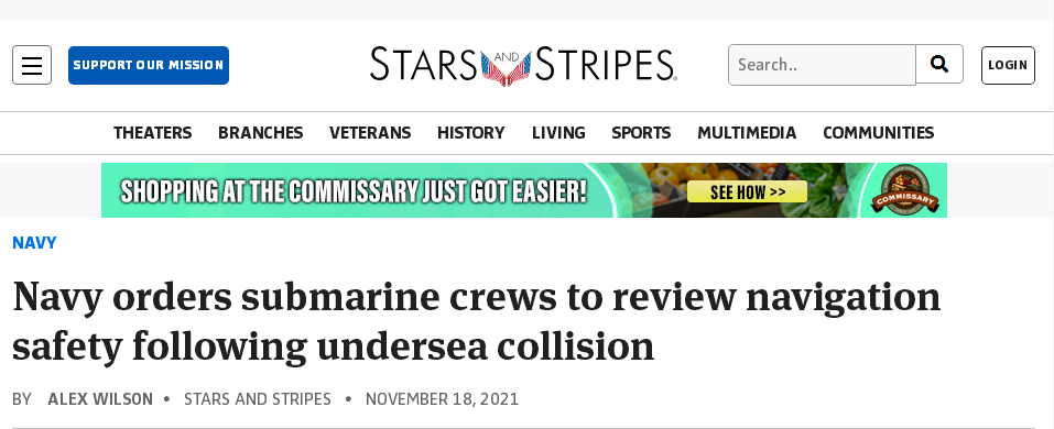 即便對於擁有美國軍方背景的《星條旗報》而言,潛艇部隊獲得的這個指令也非常罕見。報道不得不專門解釋説,與相對更常見的美國空軍戰機“停飛”指令不同,潛艇部隊的“航行暫停”並不意味着整個潛艇部隊都停止行動。美國海軍潛艇部隊發言人保羅·馬卡帕加爾少校表示,根據該指令,潛艇部隊的成員將複查導航規劃、作戰、風險管理等方面的流程,同時吸取“康涅狄格”號核潛艇事故的教訓。