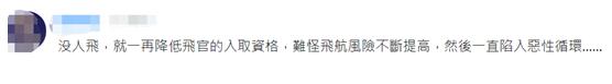 也有人説,沒人飛,就一再降低飛行員的錄取資格,難怪飛航風險不斷提高,然後一直陷入惡性循環……↓