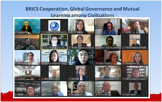 11月17日,為了紀念習近平主席宣佈在廈門設立金磚國家新工業革命夥伴關係創新基地一週年,華僑大學國際關係學院舉辦“金磚合作、全球治理、文明互鑑”國際學術研討會。來自中國、美國、俄羅斯、日本、印度、英國、丹麥、希臘、巴基斯坦、巴西、阿根廷、馬來西亞等12個國家的35位專家學者相聚雲端,參與研討。中聯部原副部長於洪君大使、中國國際問題研究院院長徐步大使、廈門市委常委黃曉舟副市長出席開幕式並分別致辭。華大國關院長林宏宇教授主持開幕式並做會議總結。