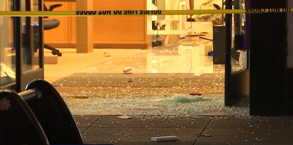 網友在推特上發佈了商店遭搶劫之後的視頻,畫面顯示,商店的玻璃被打碎,現場一片狼藉,當地警察已抵達現場。