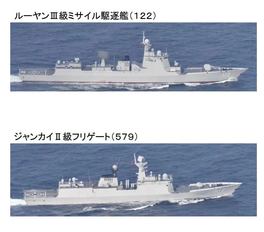而根據“御用攝影師”日本防衞省的説法,中國海軍近期還有多艘艦艇在日本週邊活動。據防衞省報告,日本海自在13日下午2時左右,發現舷號分別為122、579的2艘中國軍艦在對馬島西南方約250公里處向東北航行並進入日本海。舷號122為052D型導彈驅逐艦唐山艦,舷號579為054A型導彈護衞艦邯鄲艦。兩艦同屬解放軍北海艦隊。