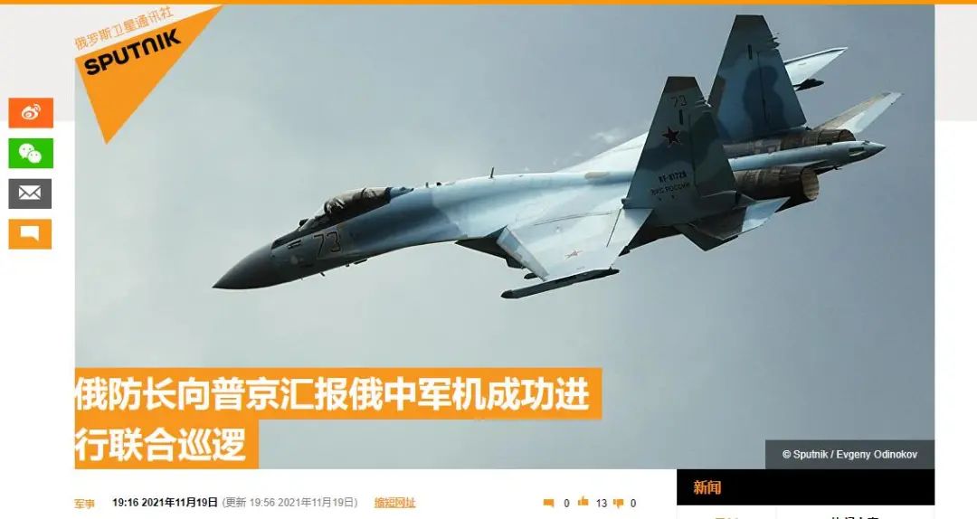正如俄羅斯衞星網19日的報道所説,俄羅斯國防部長紹伊古向總統普京彙報了俄空天軍遠程航空兵飛機和中國軍機在亞太地區日本海和東海上空成功完成聯合空中巡邏任務。總統新聞秘書佩斯科夫補充道,巡邏飛行時間超過10小時。在某些航段,日本航空自衞隊出動了F-16和F-15戰機伴飛。