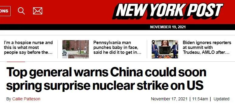 報道還説,與以可預測的弧線飛行並可被遠程雷達跟蹤的洲際彈道導彈不同,高超音速武器在飛行時離地面更近,使雷達更難探測。結合“中國正在建造的數百個新導彈發射井”,海滕告訴美國媒體,他認為中國人正在準備對美國發動出人意料的核攻擊。
