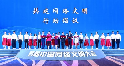在首屆中國網絡文明大會上,共建網絡文明行動倡議發佈。資料圖片