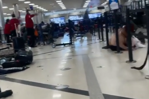 美國福克斯新聞等美媒報道稱,社交媒體上流傳的現場視頻顯示,人們紛紛匍匐在地面上,行李、圍欄散落一地,場面一度十分混亂。