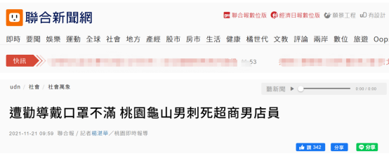 台灣男子不滿被勸戴口罩持刀刺死超市店員,網友:暴戾之氣嚴重,民進黨該下台了!